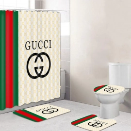 gc1 Golden Logo In Brown Monogram Background Bath Rug Set and Shower Curtain HG With Bath Rug Set and Shower Curtain HG