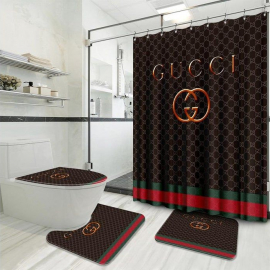 gc1 Signature Vintage Web Logo In Monogram Brown Background Bath Rug Set and Shower Curtain HG