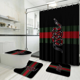 gc1 Snake With Vintage Web In Black Background Bath Rug Set and Shower Curtain HG
