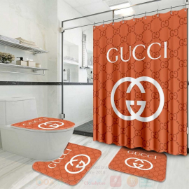 gc1 White Logo In Orange Monogram Background Bath Rug Set and Shower Curtain HG