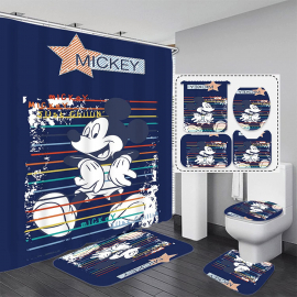 Mickey Mouse Posing Pattern Bathroom Bath Rug Set and Shower Curtain HG Set