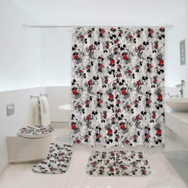 Mickey Mouse Posing Scenes Bathroom Bath Rug Set and Shower Curtain HG Set