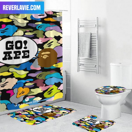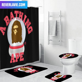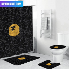 A Bathing Ape Cute Collection In Black Background Bath Rug Set and Shower Curtain HG