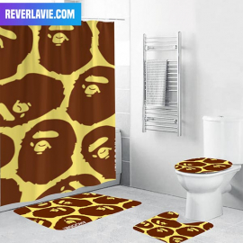 A Bathing Ape Signature Brown Patten In Yellow Background Bath Rug Set and Shower Curtain HG