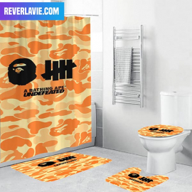 Baph Camo A Bathing Ape x Undefeated In Hypebeast Orange Camo Bath Rug Set and Shower Curtain HG