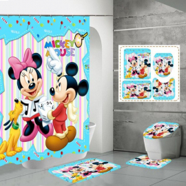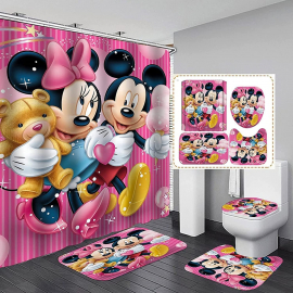Mickey And Minnie Mouse Christmas Tree And Snow Bath Rug Set and Shower Curtain HG