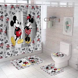 Mickey And Minnie Mouse Seeing In Grey Background Bath Rug Set and Shower Curtain HG