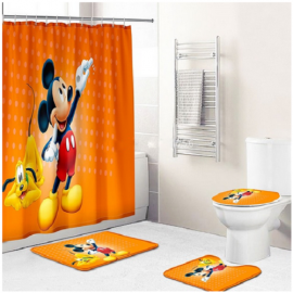 Mickey Mouse And Pluto In Orange Background Bathroom Bath Rug Set and Shower Curtain HG Set