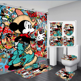 Mickey Mouse Cowboy In Colorful Background Bath Rug Set and Shower Curtain HG