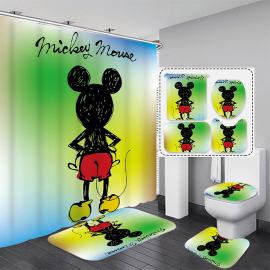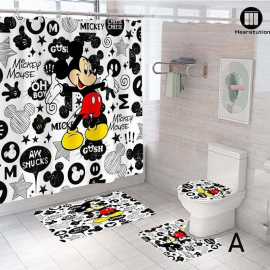 Mickey Mouse Signature And Quotes Bath Rug Set and Shower Curtain HG