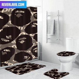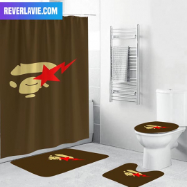 Baph Camo A Bathing Ape Star In Brown Bath Rug Set and Shower Curtain HG