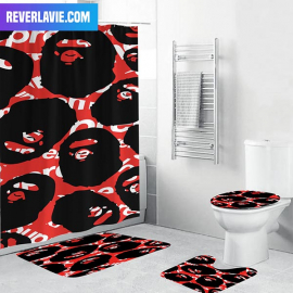 Baph Camo Signature Ape Pattern In Red SPRM Background Bath Rug Set and Shower Curtain HG
