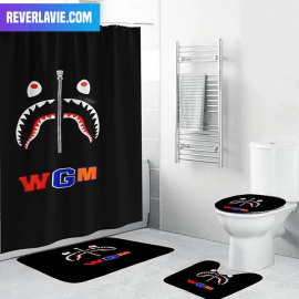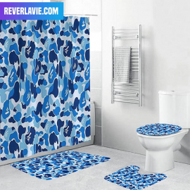 Baph Camo A Bathing Ape In Blue x NK1 Swoosh Bath Rug Set and Shower Curtain HG