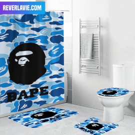 Baph Camo Signature Blue Camo With Big Ape Logo Bath Rug Set and Shower Curtain HG
