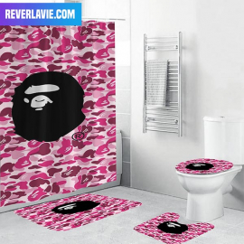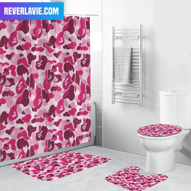 Baph Camo Signature Pink Hypebeast Camo With Ape Pattern Bath Rug Set and Shower Curtain HG