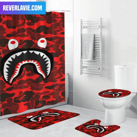 Baph Camo Signature Shark In Red Camo Bath Rug Set and Shower Curtain HG