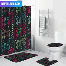 Baph Camo Star Signature Neon Pattern Bath Rug Set and Shower Curtain HG