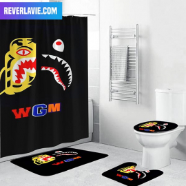 Baph Camo World Gone Mad Signature Tiger Split Shark In Black Background Bath Rug Set and Shower Curtain HG