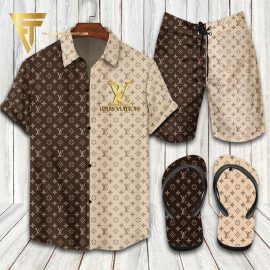 LV2 brown cream Hawaiian Shirt And Shorts Or Flip flops QDH