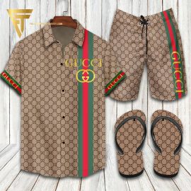GC1 gold monogram all over print Hawaiian Shirt And Shorts Or Flip flops QDH