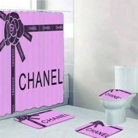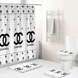 CNL shower curtain white and black logo luxury bathroom set Bath Rug Set and Shower Curtain HG