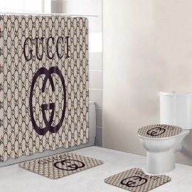 gc1 bathroom set beige white logo full shower curtain HG
