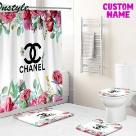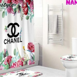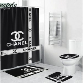 Shower curtains louis vitton black and white logo full bathroom sets HG