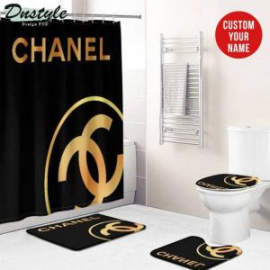 Shower curtains louis vitton brown and gold yellow logo full bathroom sets HG