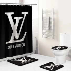 Shower curtains louis vitton black gray logo full bathroom sets HG