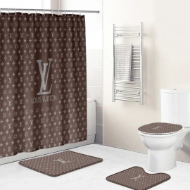 Shower curtains louis vitton brown white logo full bathroom sets HG
