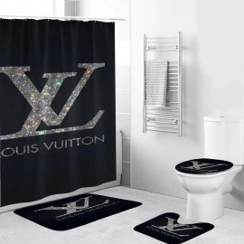 lv2 glitter logo in black background shower curtain set HG