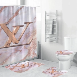 lv2 bronze logo in marble background shower curtain set HG