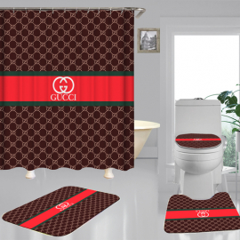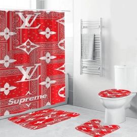 lv2 SPRMin red monogram background shower curtain set HG