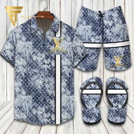 lv2 Logo Blue Luxury Brand Hawaiian Shirt And Shorts Or Flip flops HG