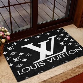 lv2 While Logo In Black Background Doormat HG Home Decoration