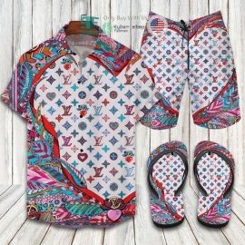 LV2 Colorful Hawaii Shirt Shorts Set & Flip Flops LV Luxury Clothing Clothes Outfit For Men HG