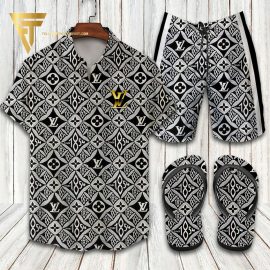 lv2 Black Monogram Luxury Brand Hawaiian Shirt And Shorts Or Flip flops HG