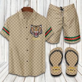 GC1 Brown Tiger Hawaii Shirt Shorts Set & Flip Flops LV Luxury Clothing Clothes Outfit For Men HG