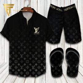 LV2 gold black logo vintage Hawaiian Shirt And Shorts Or Flip flops QDH