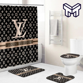 LV2 Monogram Big Logo Fashion Luxury Brand Premium Bathroom Set NNA Home Decor Shower Curtain And Rug Toilet Seat Lid Covers Bathroom Set NNA