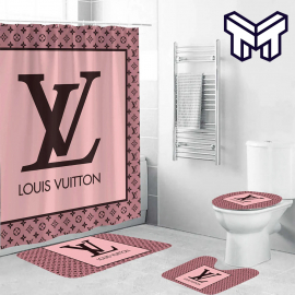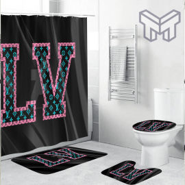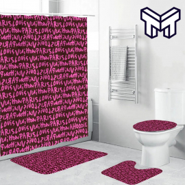 LV2 Pinky Logo Fashion Luxury Brand Premium Bathroom Set NNA Home Decor Shower Curtain And Rug Toilet Seat Lid Covers Bathroom Set NNA