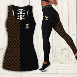 lv2 Brown Tank Top Leggings Luxury Brand Clothing Clothes Outfit Gym For Women HT