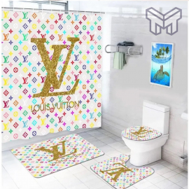 LV2 Fashion Logo Limited Luxury Brand Bathroom Set NNA Home Decor 46 Shower Curtain And Rug Toilet Seat Lid Covers Bathroom Set NNA