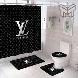 LV2 Black Fashion Luxury Brand Premium Bathroom Set NNA Shower Curtain Bath Mat Set Home Decor Shower Curtain And Rug Toilet Seat Lid Covers Bathroom Set NNA