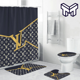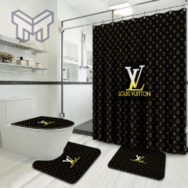 LV2 Black Golden Logo Bathroom Set NNA Home Decor Shower Curtain And Rug Toilet Seat Lid Covers Bathroom Set NNA
