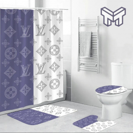 LV2 Blue White Fashion Luxury Brand Premium Bathroom Set NNA Home Decor Shower Curtain And Rug Toilet Seat Lid Covers Bathroom Set NNA