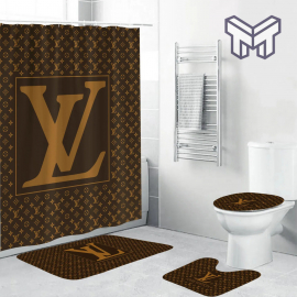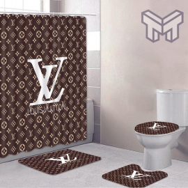 LV2 Brown Fashion Logo Luxury Brand Bathroom Set NNA Home Decor Shower Curtain And Rug Toilet Seat Lid Covers Bathroom Set NNA